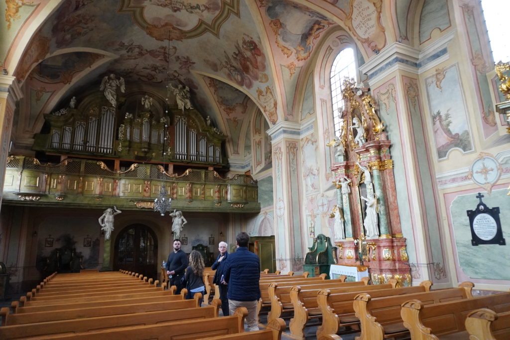 The leitmotif was the sacred painting of the Rococo artist-Bernardine, Walenty Żebrowski. The painter’s original style was manifested in the fact that he introduced illusionist elements and landscape motifs into his works. We admired Żebrowski’s craftsmanship on the walls and vaults of the Bernardine church in Warta and in the post-Bernardine monastery complex in Kalisz.